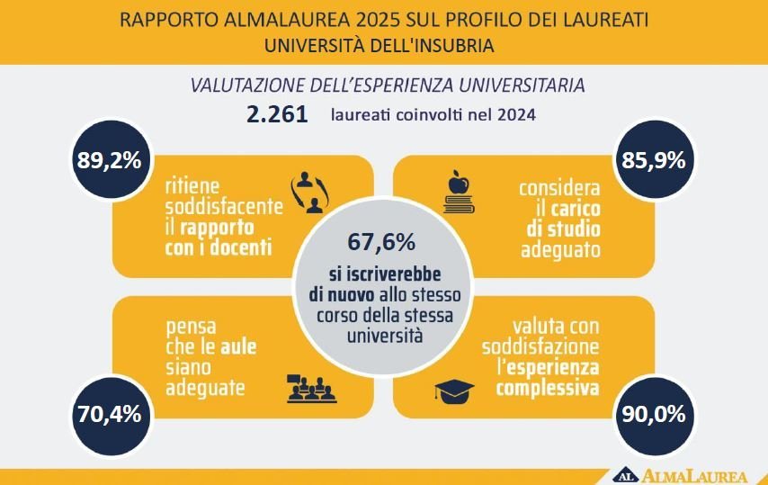 from the University of Insubria. The data focus on analysing the outcomes of first- and second-cycle graduates who completed their studies in 2023 and were interviewed one year after graduation, as well as those of second-cycle graduates who completed their studies in 2019 and were interviewed five years after graduation.