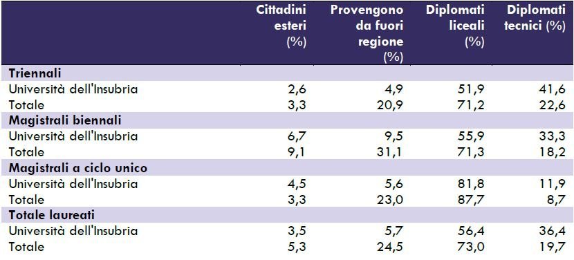 5.7% of graduates come from outside the region; specifically, this figure is 4.9% among first-cycle graduates and 9.5% among two-year Master’s graduates.